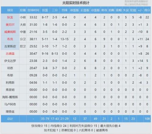哈滕的缺阵,让雷霆内线短板暴露了。此役太阳篮板球49-29完爆雷霆,前场篮板12-2净胜10个。雷霆夹击布克付出代价,古德温和狄龙联手命中10记三分。雷霆另外一个问题是三分不稳定,本场32中10,本赛季三分命中率36.5%。