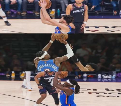 末节最后1分32秒,亚历山大有两次罚球机会。狄龙跺脚干扰罚球,SGA找裁判投诉,但裁判并未理会。SGA跟狄龙是加拿大国家队友,两个人笑着互喷了两句。今天太阳能够获胜,除了狄龙跟布克,还有一个功臣:乔丹-古德温!